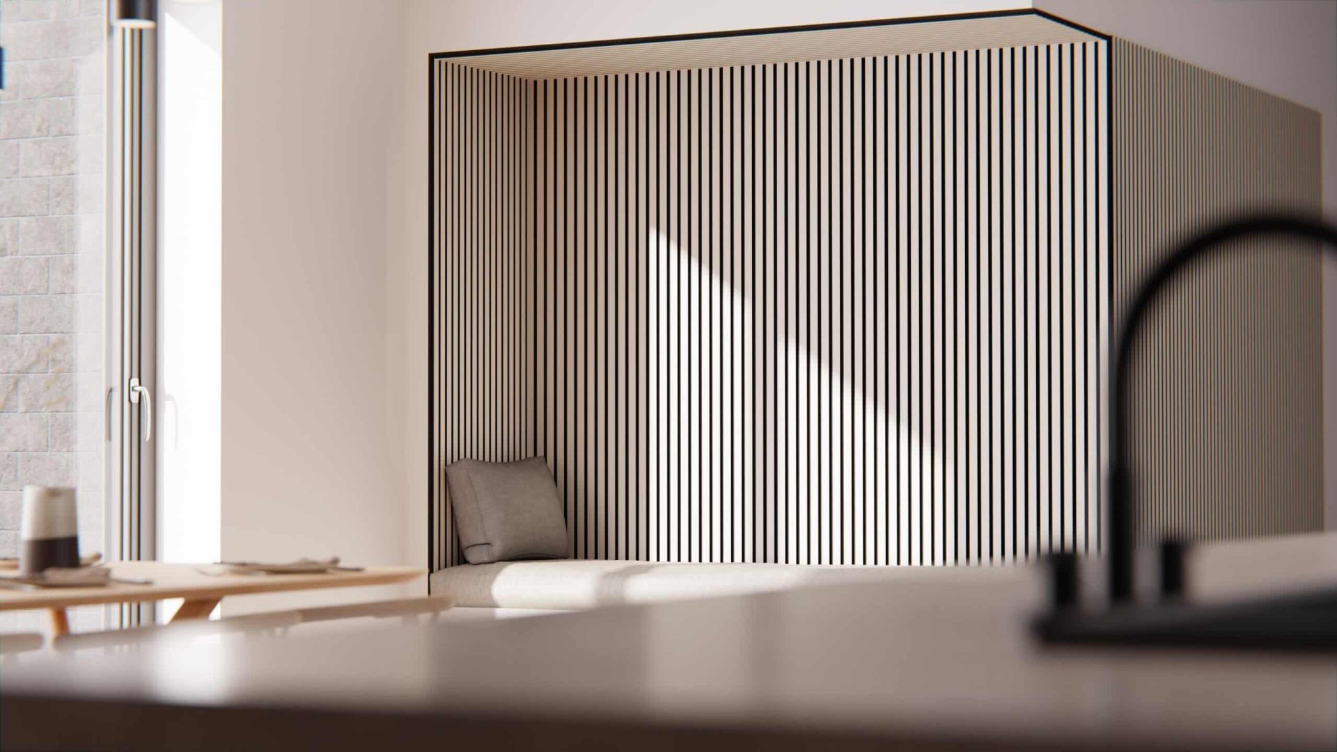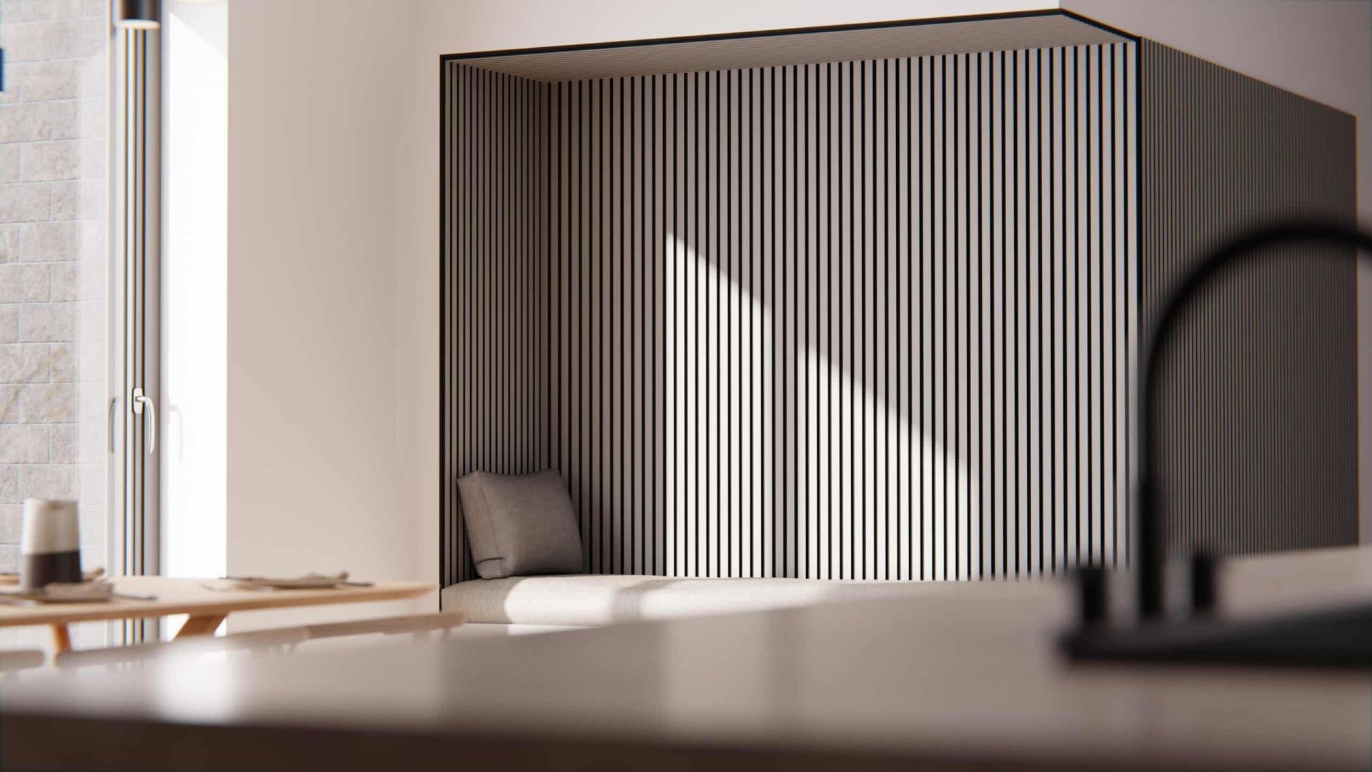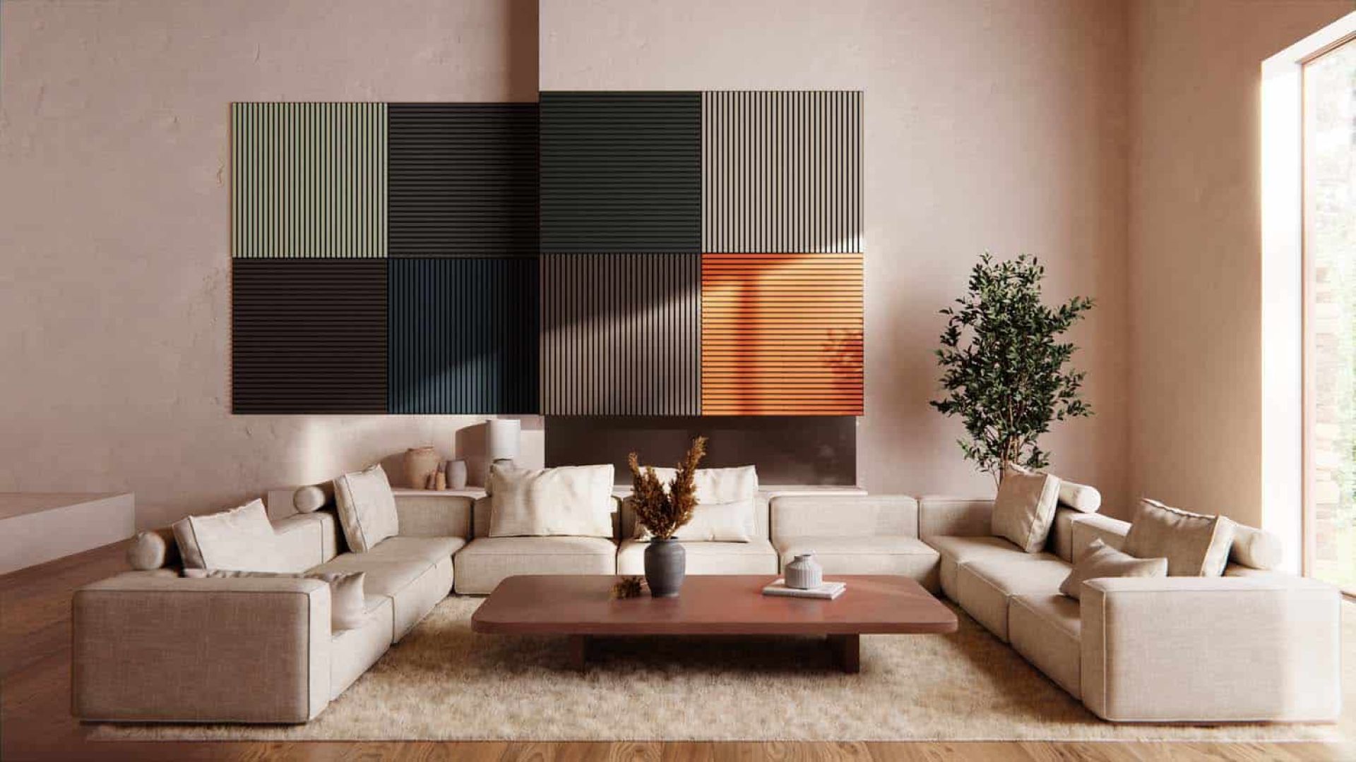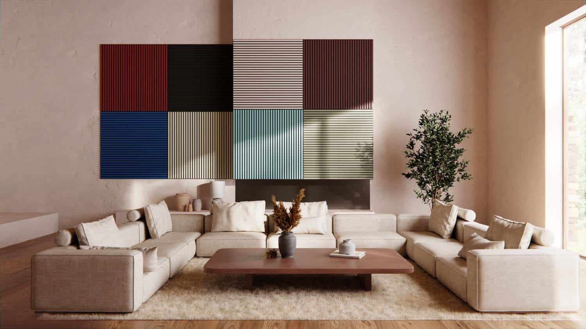 Fjordwall’s acoustic panels with a linoleum surface combine functionality and aesthetics in one solution. The wide range of carefully selected colours allows you to create exactly the look that suits your home – whether you want a stylish, subdued room or a striking contrast that adds character.