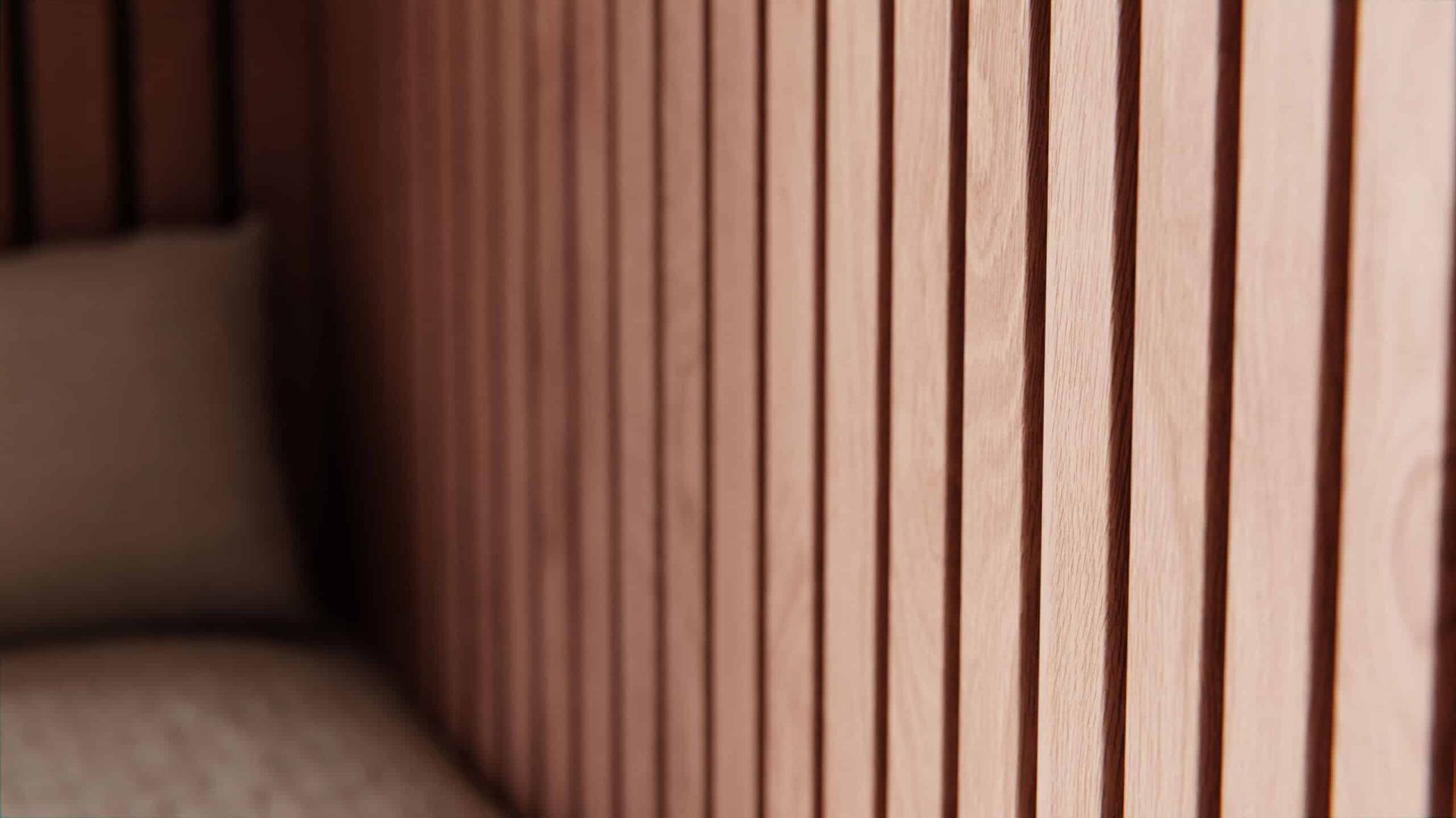 Our LUX panels differentiate themselves from our other acoustic panels with wider slats and slats where the genuine wood veneer is visible on the front and side surfaces. This gives them a unique expression.