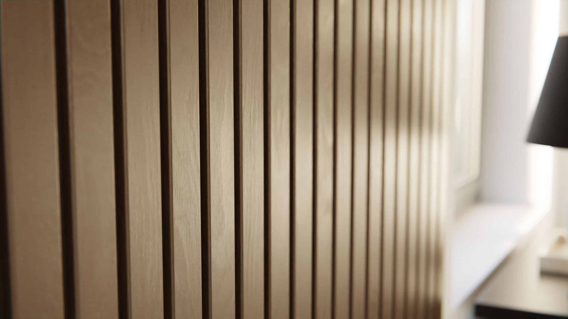 The wide slats and the three-sided wrapped genuine wood veneer make the wood veneer’s texture even more vibrant.