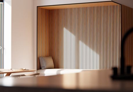 Fjordwall is an expert in acoustic solutions and the aesthetic design of walls and ceilings – offering a wide range of vibrant colors and noble wood species.