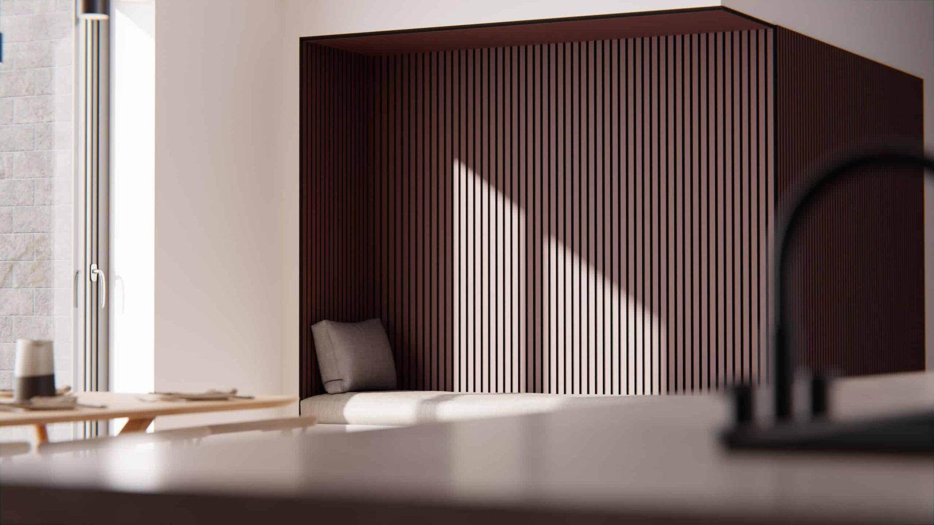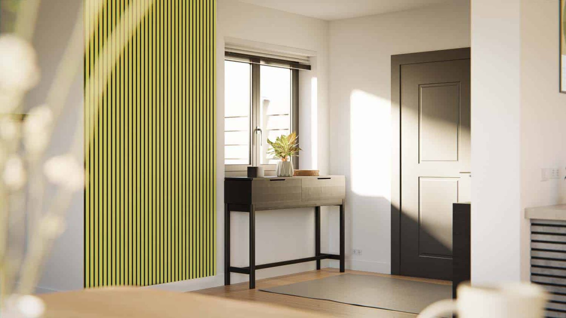 Fjordwall’s acoustic panels with a linoleum surface combine functionality and aesthetics in one solution. The wide range of carefully selected colours allows you to create exactly the look that suits your home – whether you want a stylish, subdued room or a striking contrast that adds character.