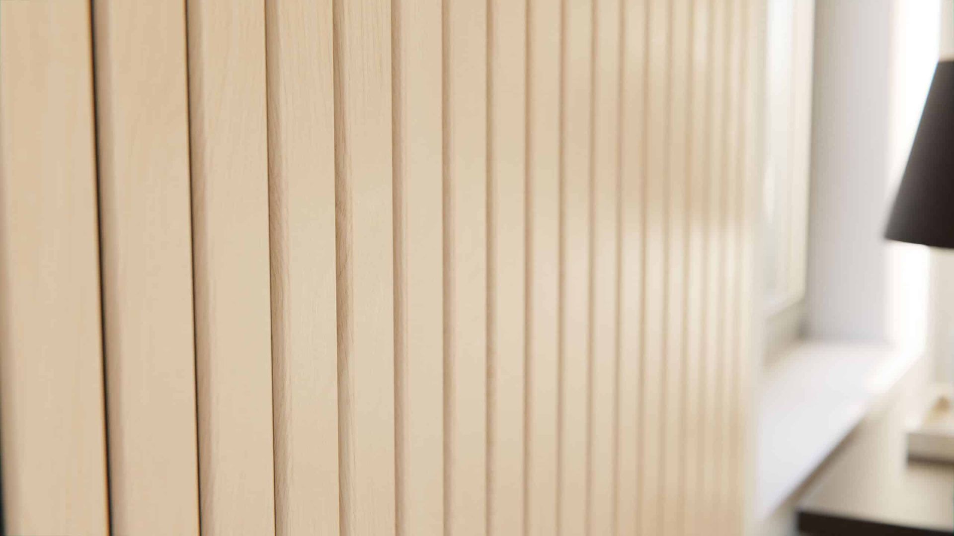 The wide slats and the three-sided wrapped genuine wood veneer make the wood veneer’s texture even more vibrant.